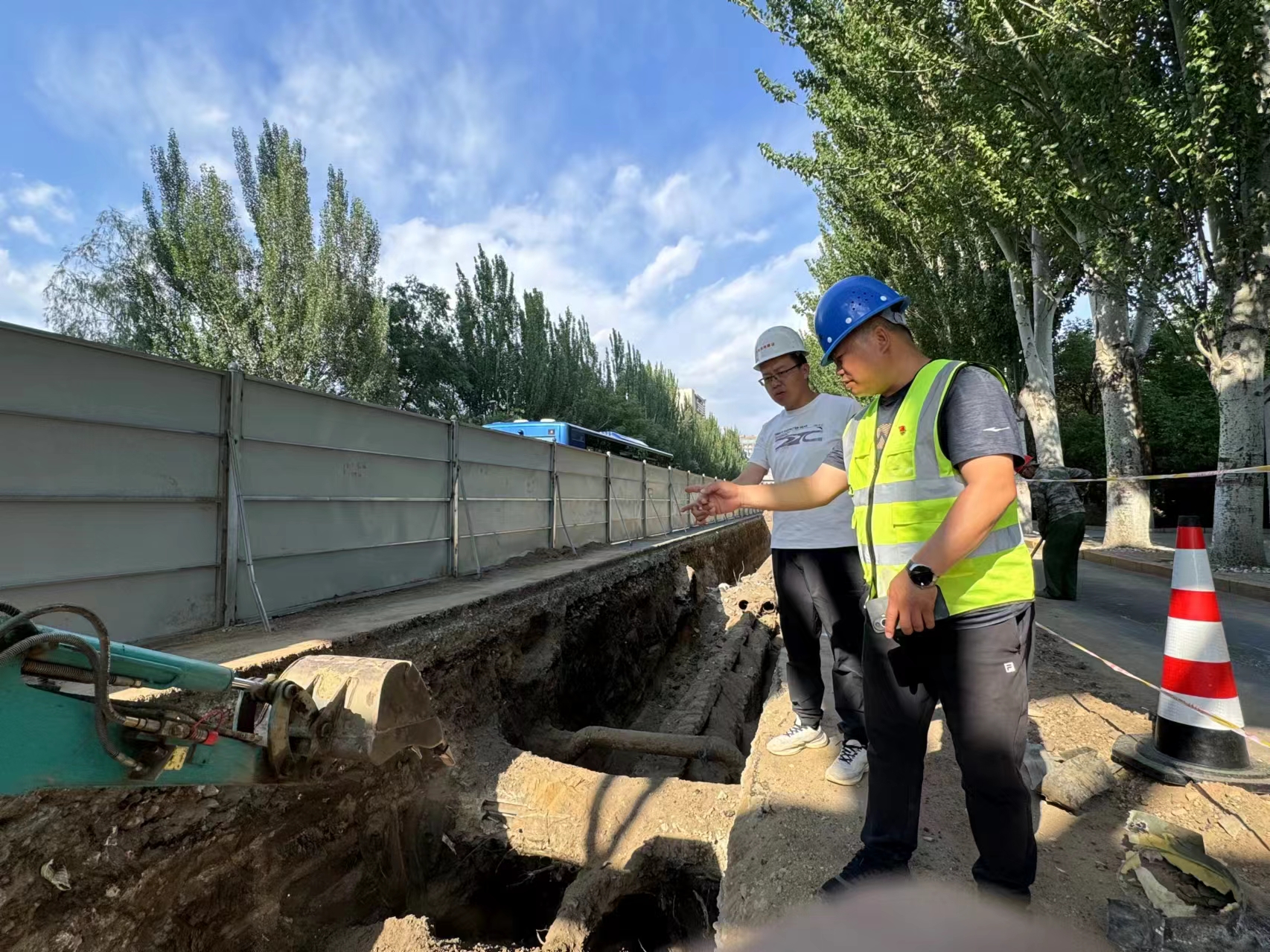 沒有解決不了的困難,只有解決不了困難的人。由于一次網(wǎng)項目施工面臨工期短、任務(wù)重、制約因素多、專業(yè)接口多、施工難度大等艱難困境,面對壓力他堅信“這是一種挑戰(zhàn),更是對一名共產(chǎn)黨員的考驗,組織上能把這么重要的工程交給我,是領(lǐng)導(dǎo)們對我的信任,我一定要全力以赴,有所作為,有所擔(dān)當(dāng)?!庇谑牵磸?fù)多次地與設(shè)計、施工隊伍、城管、燃?xì)?、供排水、市政、供電、通信等部門溝通協(xié)調(diào),隨時修訂施工方案;接到市民“12345”工單他都第一時間耐心細(xì)致的做好解釋工作,獲得群眾理解與支持;與此同時,他主動協(xié)調(diào)交警及周邊相關(guān)單位快速完成交改、圍擋、場地整理等工作,充分發(fā)揮了一線供熱戰(zhàn)士敢打硬仗、不怕吃苦的“鐵軍”精神。