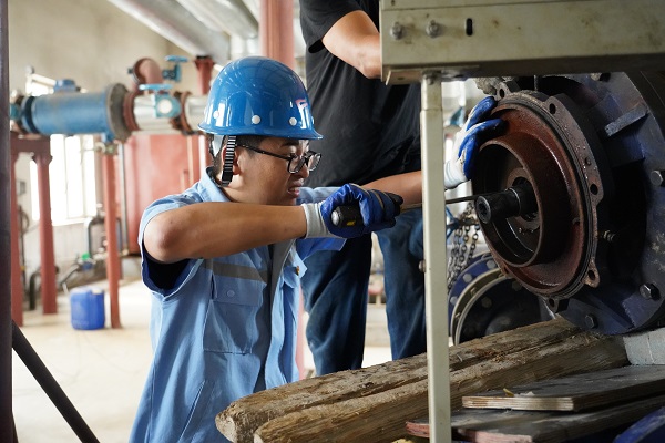 近日,筆者跟隨城發(fā)供熱公司橋靠分公司運(yùn)營(yíng)六所所長(zhǎng),來到了巨海城二區(qū)的加壓站,那里正在對(duì)站內(nèi)的設(shè)備進(jìn)行檢修。筆者一進(jìn)加壓站,就看到五個(gè)身強(qiáng)體壯的男同志正在合力拆卸一個(gè)1米多高的循環(huán)泵,他們有的拉著鋼絲繩,有的往下面墊木板,每個(gè)人的手臂上是青筋暴起,臉憋的通紅。別看這么不起眼的一個(gè)循環(huán)泵,5個(gè)人用了半小時(shí)才拆卸下來。