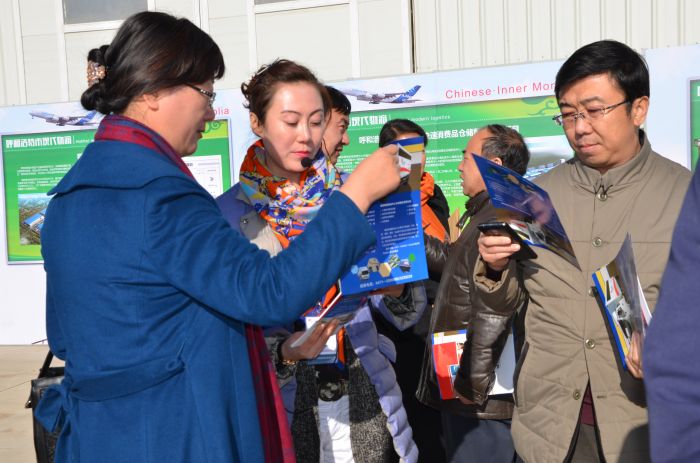 呼市商務局領導給代表們講解物流園區(qū)的建設情況。亞利攝