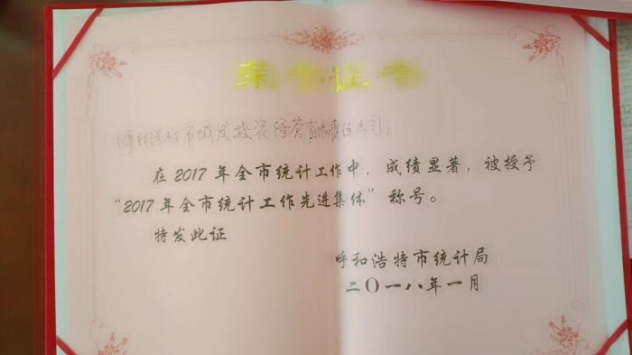今年,市統(tǒng)計(jì)局對(duì)2017年全市統(tǒng)計(jì)工作先進(jìn)集體進(jìn)行了表彰,城發(fā)公司被授予