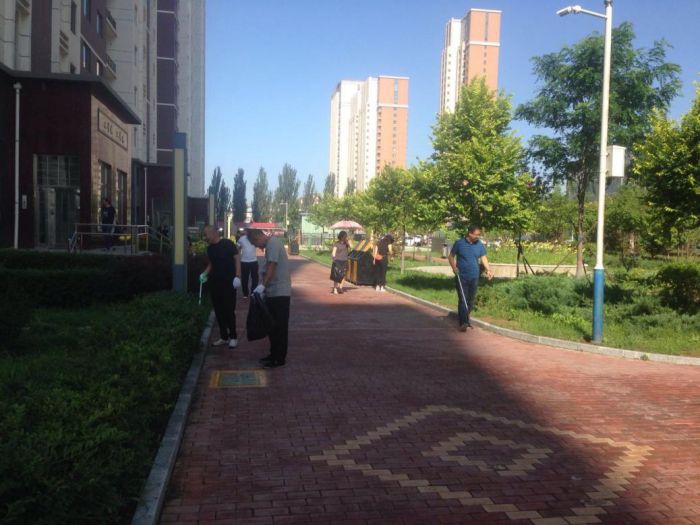 客服提升小組在小區(qū)明顯位置擺放展臺和宣傳畫,向業(yè)主征詢服務滿意度,發(fā)放關(guān)于消防安全等宣傳單;保潔綠化小組成員配合小區(qū)全體保潔人員開展清掃環(huán)路衛(wèi)生、撿拾草坪內(nèi)的垃圾、清洗垃圾箱等衛(wèi)生清潔工作;工程提升小組成員對金城小區(qū)的單元門開啟不靈、關(guān)閉不嚴等問題進行了現(xiàn)場維修。