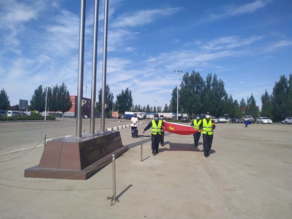 城發(fā)物流惱包園區(qū)全體職工舉行迎“七一”升國(guó)旗儀式