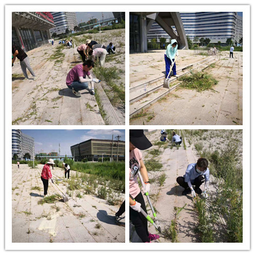 經(jīng)過一上午的作業(yè),廣場上的蒿草基本清理完畢。大家