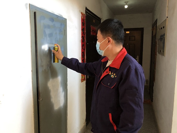 活動中,黨員與志愿者分工協(xié)作,配合默契,利用小鏟、噴漆等工具,對樓梯臺階、居民入戶門周邊墻面的“小廣告”進行了遮蓋清理;向過往居民發(fā)放宣傳單、入戶宣傳創(chuàng)建文明城市的重要意義、引導(dǎo)居民主動整理樓道堆放的雜物。