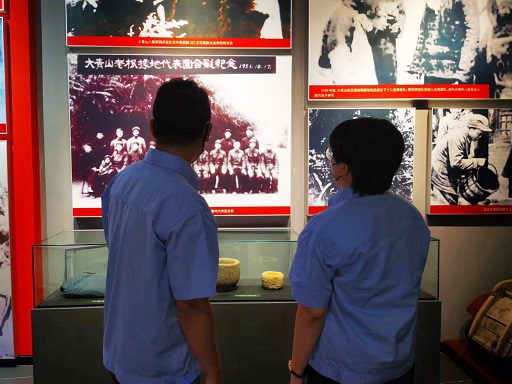 儀式結束后,大家參觀了《大青山革命歷史展覽》,通過講解員的講解,黨員干部們深刻感受到大青山地區(qū)各族人民在共產(chǎn)黨的領導下,團結一致、前赴后繼,開辟大青山抗日游擊根據(jù)地的艱苦卓絕和老一輩無產(chǎn)階級革命家的英勇無畏,艱苦樸素的精神。